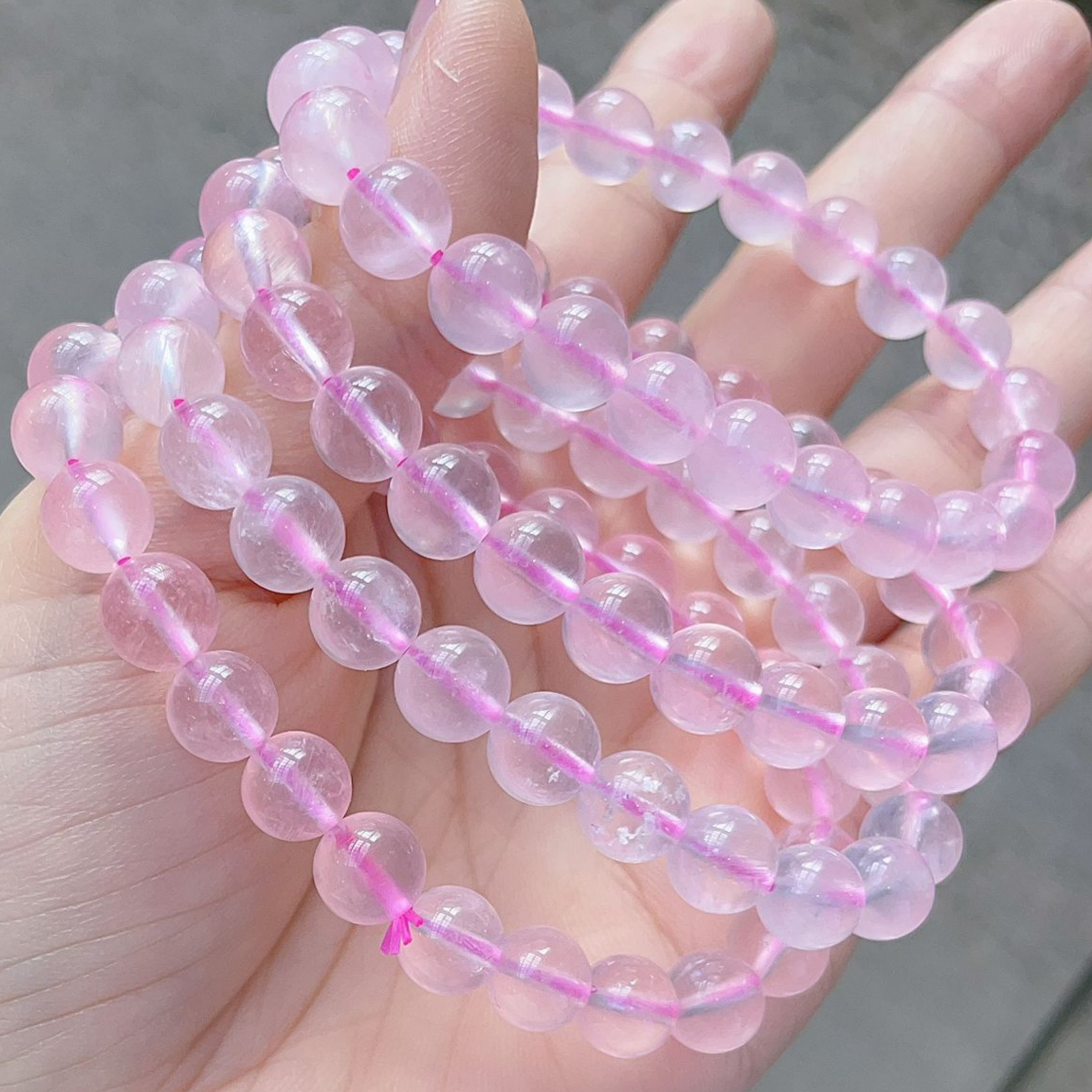 This delicate and elegant pink jade bracelet symbolizes tenderness and warmth. Carefully polished to its crystal-clear clarity, the natural jade enhances your wrist and symbolizes peace and good fortune.